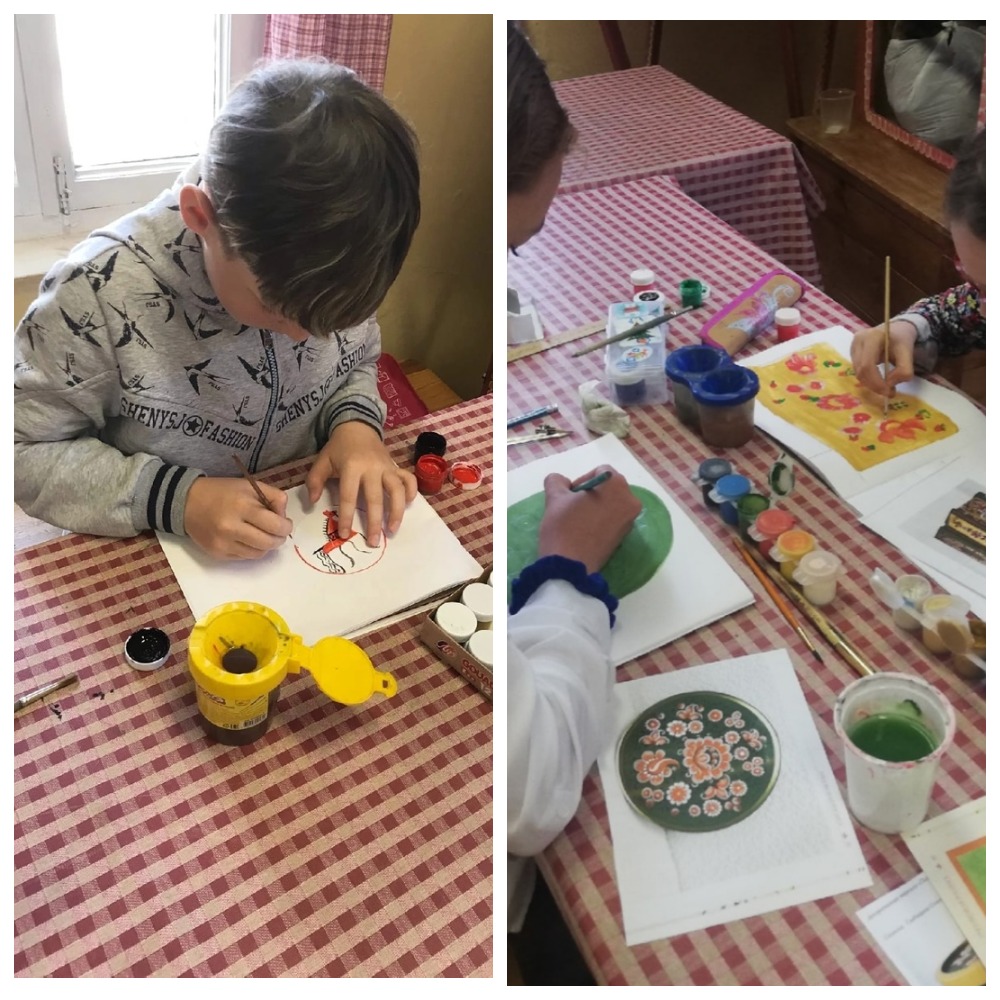 Обучающимся на выбор предоставлено два вида росписей: Грязовецкая (Вологодская область) и Мезенская (Архангельская область).