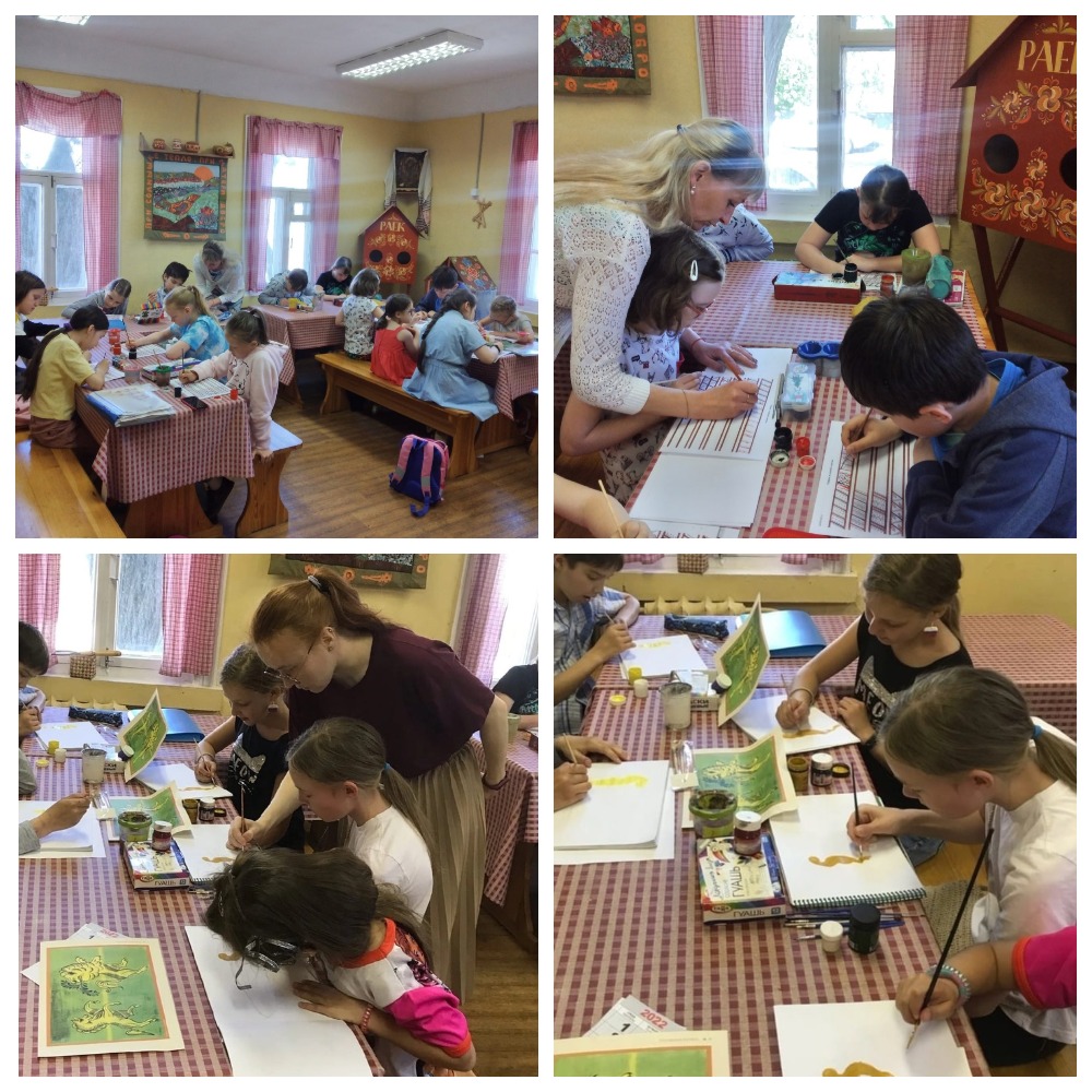 В БОУ ДО ВО "Школа традиционной народной культуры" продолжаются занятия по летним программам. Дети знакомятся с таким старинным ремеслом, как роспись по дереву.