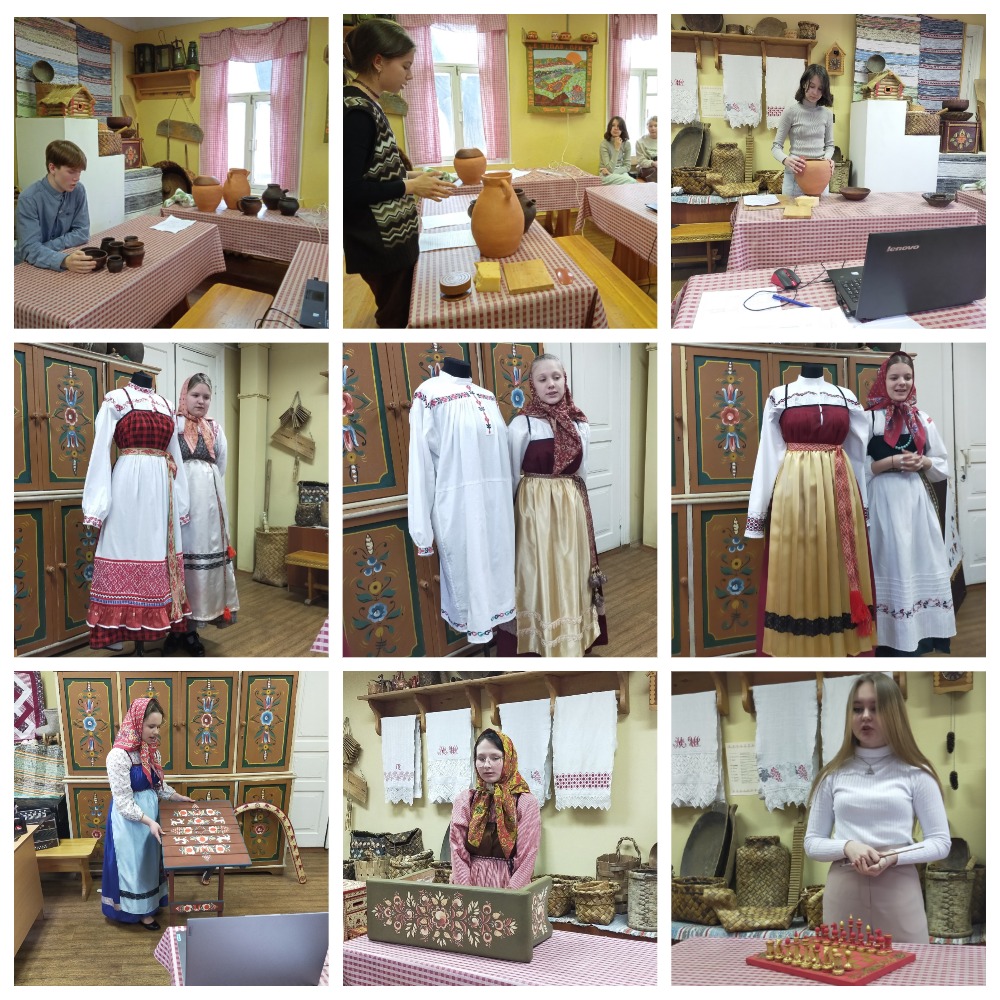 С 11 по 15 апреля проходят защиты конкурсных работ. Уже состоялись конкурсные защиты в номинациях «Декоративно-прикладное творчество» и «Народный костюм». Наши ребята представили свои проекты и рассказали о техниках ткачества, вышивки, изготовления народного костюма, керамической посуде, росписях Вологодской области.
