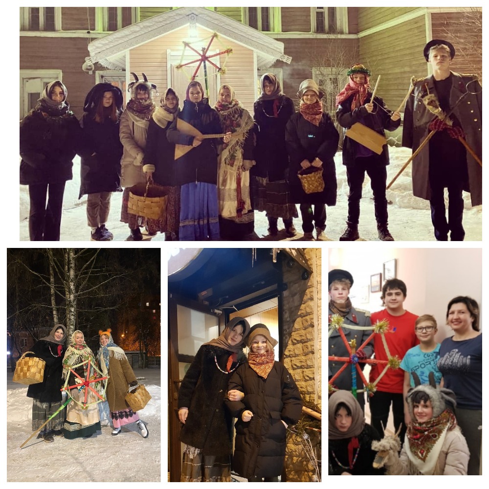 По традиции дети и педагоги Школы традиционной народной культуры совершают поздравительные обходы с песнями-колядками, с пожеланиями благополучия и плодородия в наступающем году. За пожелания добра и благополучия в новом году колядовщиков одаривают сладостями.