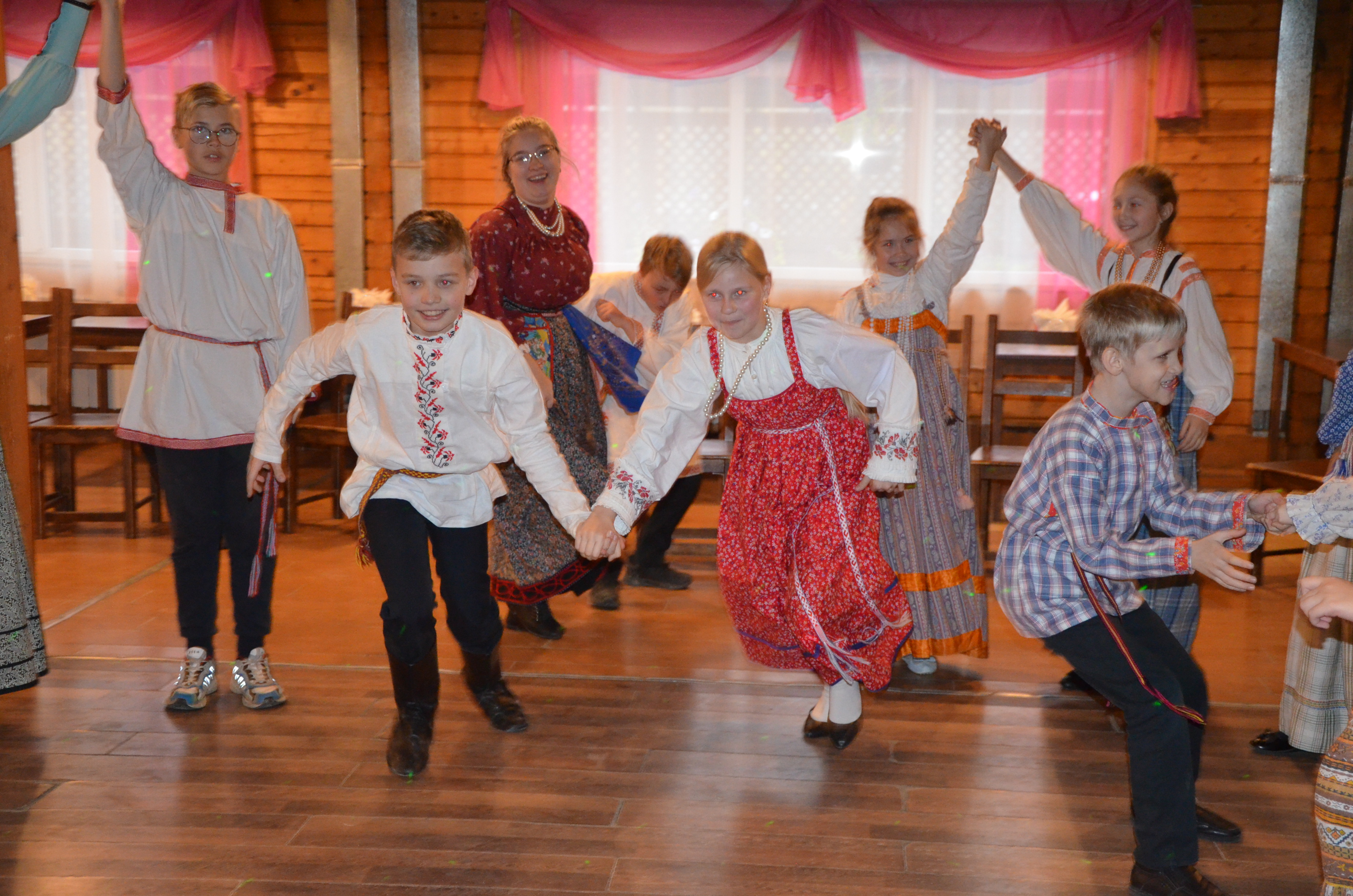 На Покровской неделе принято ходить друг к другу в гости. Вот и к нам в школу традиционной народной культуры, 18 октября, пришли на вечерку фольклорные коллективы города Вологды: фольклорный коллектив "Раденье" и "Детская музыкальная школа №4". Весело и задорно общались ребята, играли в народные игры, пели и плясали.