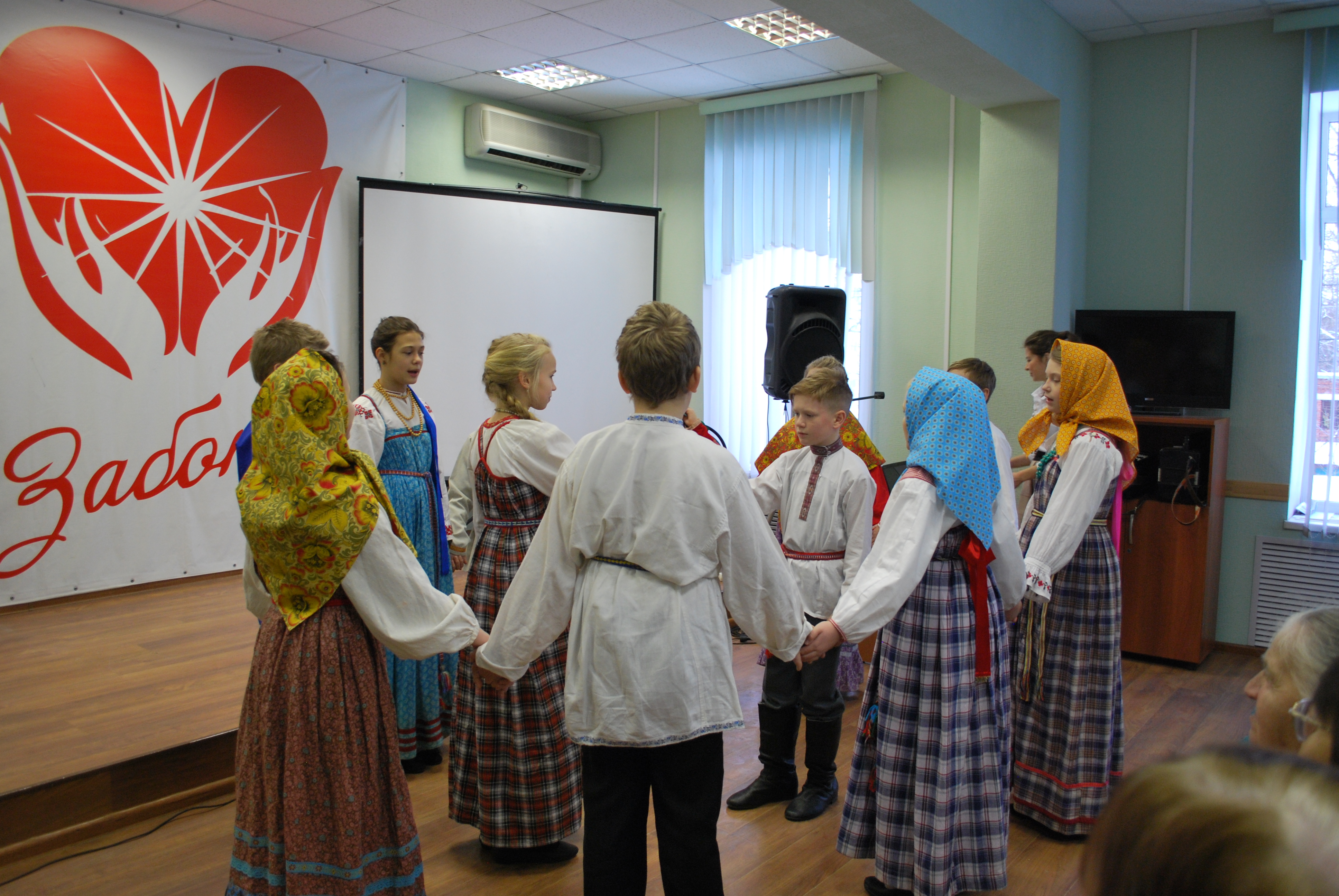 Фольклорный коллектив Школы традиционной народной культуры выступил 29 ноября в культурно-досуговом центре «Забота», где проходили «Дни славянской культуры». Дети представили ветеранам труда, гостям и жителями Вологды традиционные хороводы, игры, пляски Бабушкинского, Тотемского и Тарногского районов Вологодской области.Мальчики исполнили частушки и пляску «Русского» под наигрыш юного гармониста Льва Зубакина.