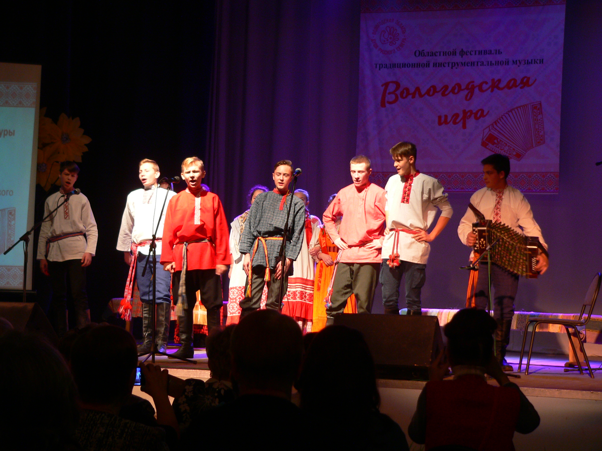 26 ноября в Городском доме культуры состоялся гала-концерт «Вологодская игра». Музыканты Вологодской области, прошедшие отборочный тур, показали свое умение игры на народных музыкальных инструментах. Наши обучающиеся тоже приняли участие в концерте. Георгий Пескишев исполнил наигрыши на гармони Тарногского района, а участники фольклорного коллектива Школы народной культуры сопровождали его игру частушками и исполнением пляски «Вытегорская кадриль».