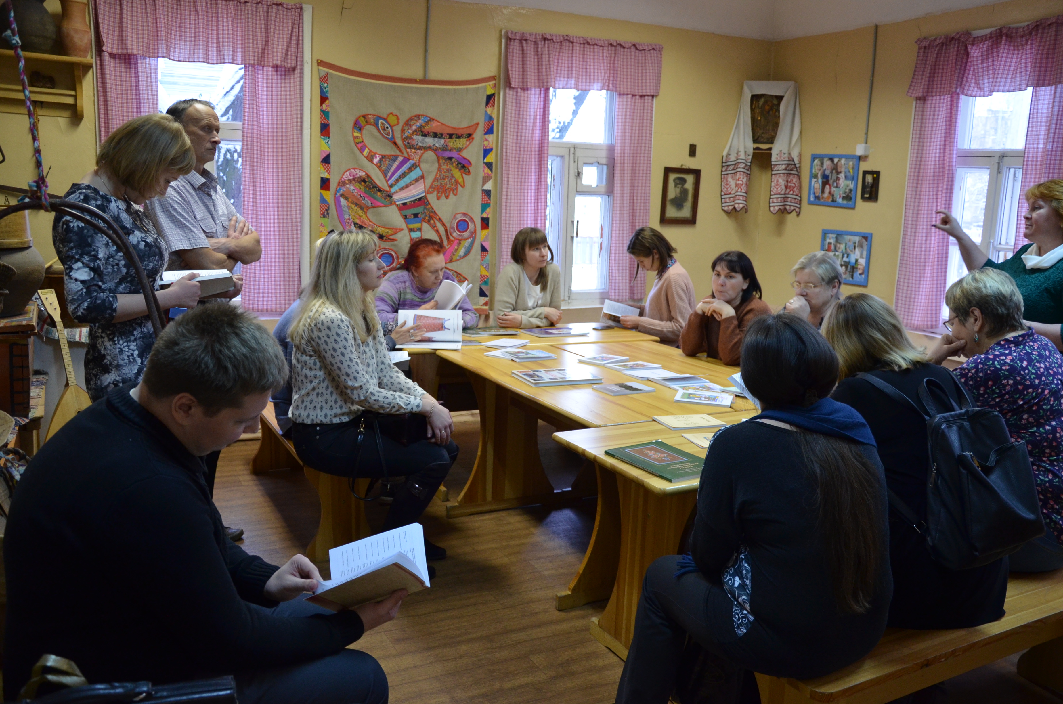 24 ноября Школу традиционной культуры посетили педагоги дополнительного образования Вологодской области.Разговор шел об этнокультурном образовании, о значении традиционной народной культуры в современной жизни, об образовательных общеразвивающих программах, реализуемых в Школе, о методике проведения экспедиции и др. Педагогов познакомили с методикой изучения песенного, хореографического фольклора Вологодской области, проведен мастер-класс по освоению северных хороводов и игр.