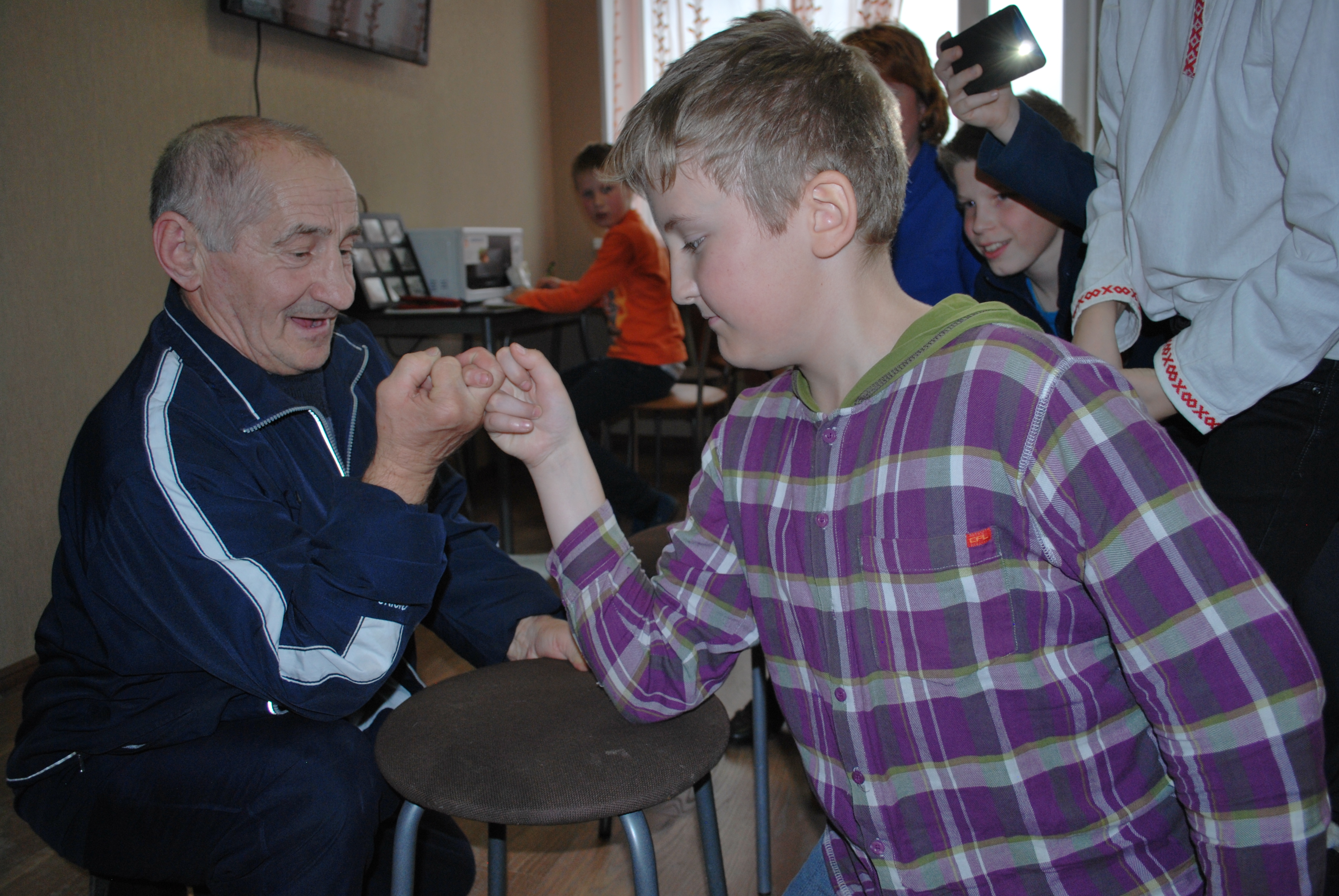 У ребят остались яркие впечатления от встреч со старшим поколением. Девочкам особенно запомнился способ приготовление сливочного масла в домашних условиях, а мальчики заинтересовались приемами борьбы и способами состязания «на крючках», которые показал Вячеслав Николаевич Кузнецов.